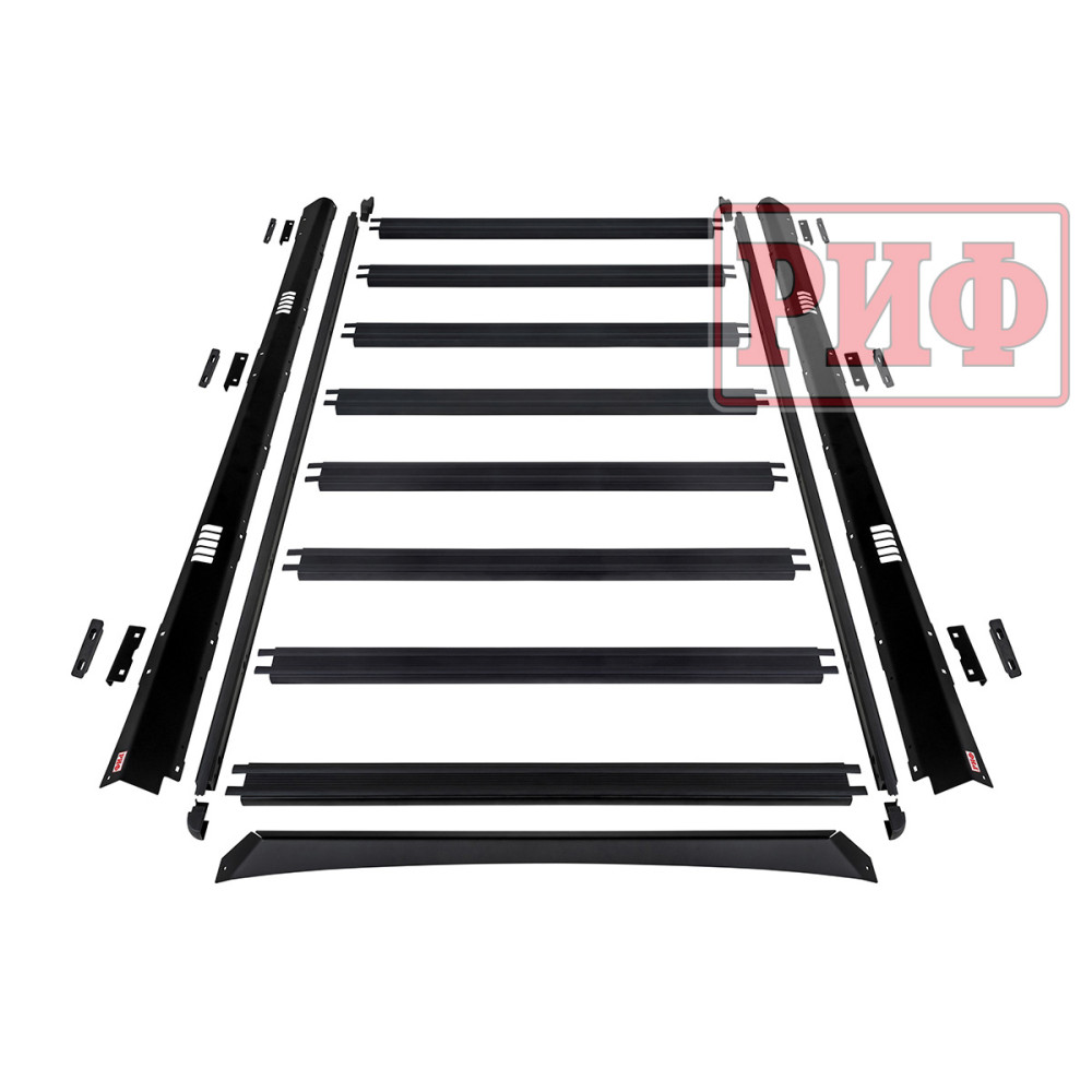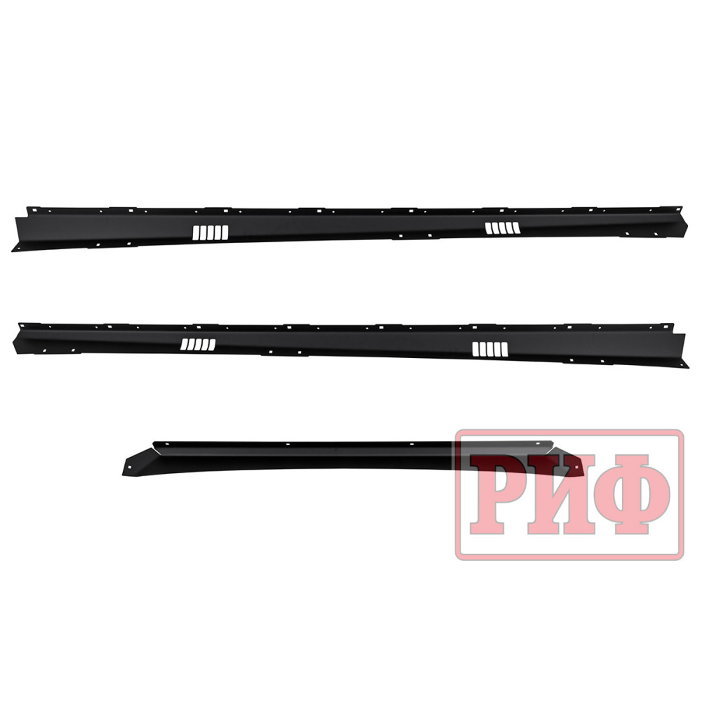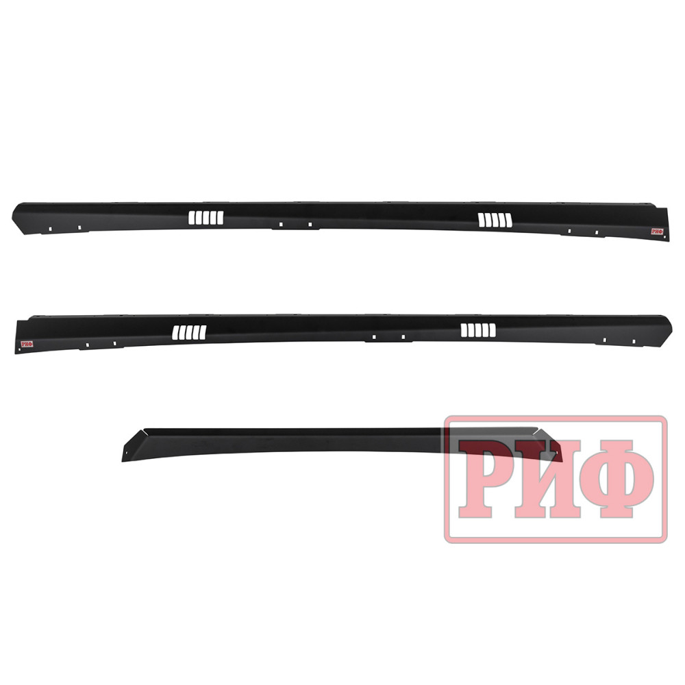 Алюминиевый багажник РИФ – это не просто платформа, на которую можно что-то положить, и притянуть подручными средствами к поперечинам, а полноценная система для крепления не только различных по форме и весу грузов, но и многочисленного дополнительного оборудования и инвентаря. В поперечинах, на всю их длину, есть пазы в которые заводятся крепежные болты кронштейнов или кольца для стяжных крепежных ремней. Таким образом точку крепления можно организовать в любом месте платформы. Толщина стенки паза, в который входит болт крепления, - 3 мм, что позволяет ему держать нагрузку на разрыв до 200 кг! Пазы закрыты специальными упругими пластиковыми защитными лентами, имеющими объемную полусферическую форму. Благодаря этому, груз, размещаемый на платформе, не контактирует с собственно алюминием, а лежит на этих лентах. Таким образом, не царапается порошковая краска багажника и сам груз. Также ленты препятствуют попаданию грязи, мусора и воды в пазы.