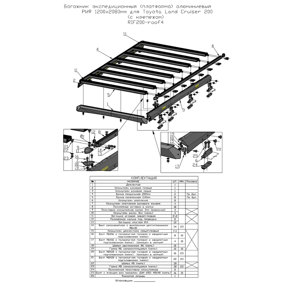 Весь крепеж, который используется в конструкции багажника, в том числе для его сборки и установки, выполнен из высококачественной нержавеющей стали, т.е. со временем не будет никаких ржавых потеков и болты «не закиснут». В случае необходимости, крепеж можно докупить как у нас, так и в любом магазине, продающем крепежные изделия. Багажник поставляется в картонной упаковке с крепежом и подходит только под конкретную модель автомобиля.