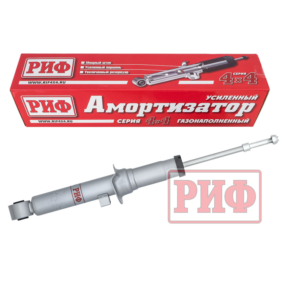 Газ, находящийся под давлением в компенсационной камере наружной трубы, позволяет повысить устойчивость амортизатора к высоким нагрузкам. Масло под давлением газа менее подвержено эффекту кавитации, а значит, и меньше вспенивается в отличие от обычного гидравлического амортизатора. Также, благодаря увеличенному масляному резервуару с большим количеством масла, усиленному штоку и поршню, амортизаторы "РИФ" обладают длительным рабочим ресурсом и обеспечивают великолепную стабильность рабочих характеристик при длительной езде по дорогам общего пользования, отличную курсовую устойчивость, хорошую артикуляцию подвески и приятную плавность хода на бездорожье.