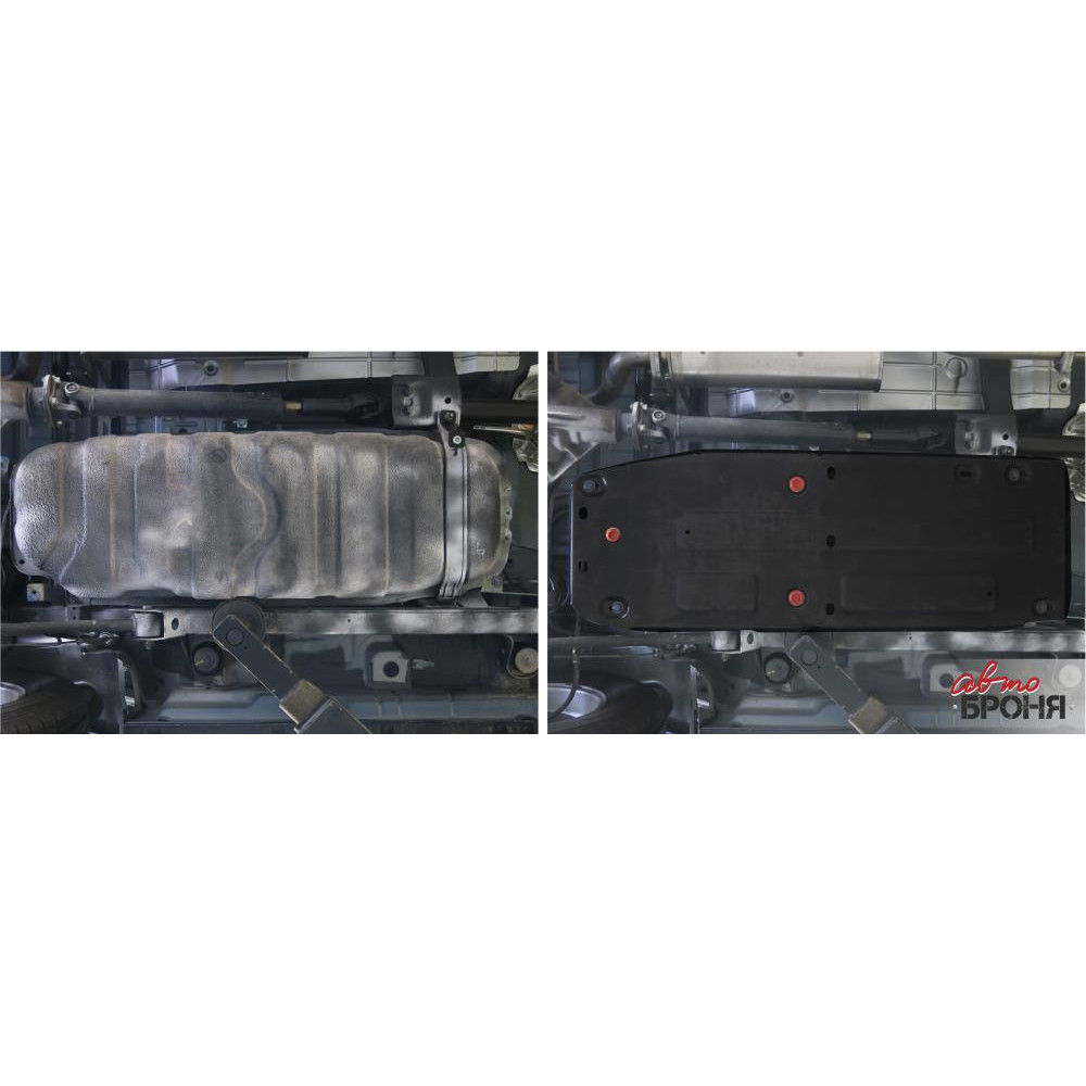 Защита топливного бака + крепеж, АвтоБРОНЯ, Сталь, Ssang Yong Actyon Sport 2012-, V - все/Ssang Yong Kyron 2007-, V - 2.0d; 2.3/Ssang Yong Rexton 2012-, V - 2.7d; 3.2/Ssang Yong Rexton 2007-2012, V - 2.7d; 3.2.