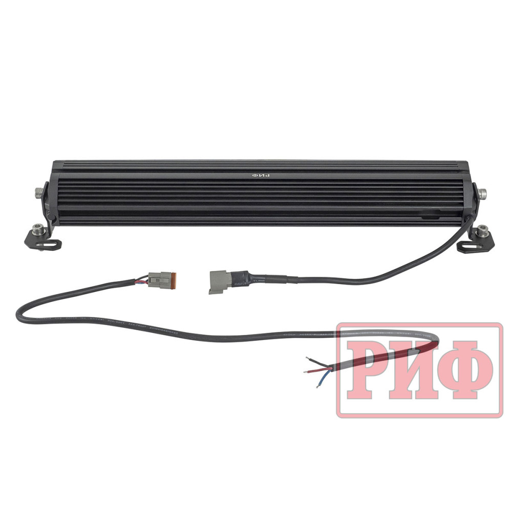 Конструкция фары РИФ 486 мм 120W LED с ДХО SM-10120U обеспечивает защищённость от пыли и влаги по стандарту IP67, а форма корпуса хорошо рассеивает тепло от работающих световых элементов. Фара устанавливается с помощью двух кронштейнов, которые вместе с крепежом и кабелем входят в стандартный комплект поставки и позволяют регулировать угол наклона светового луча.
