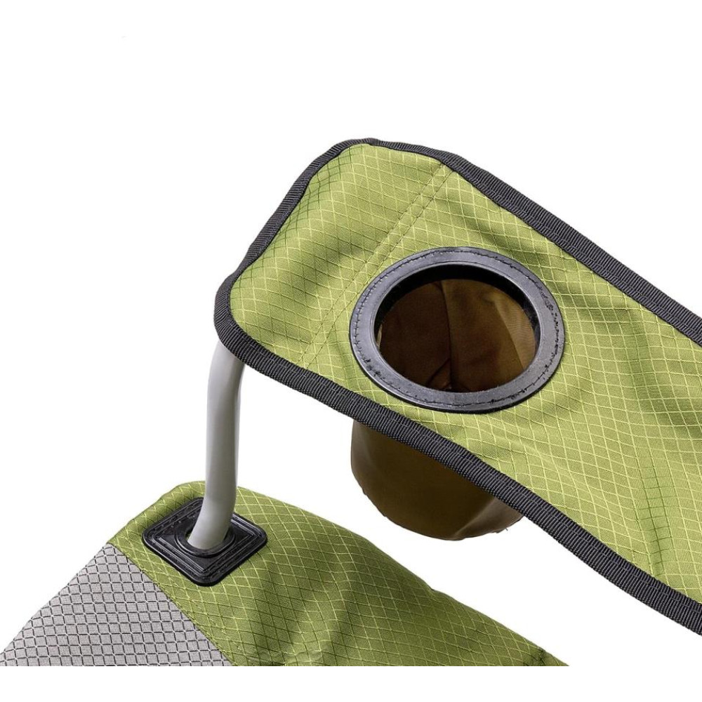В правом подлокотнике расположен подстаканник из ткани для стакана или банки с напитком.