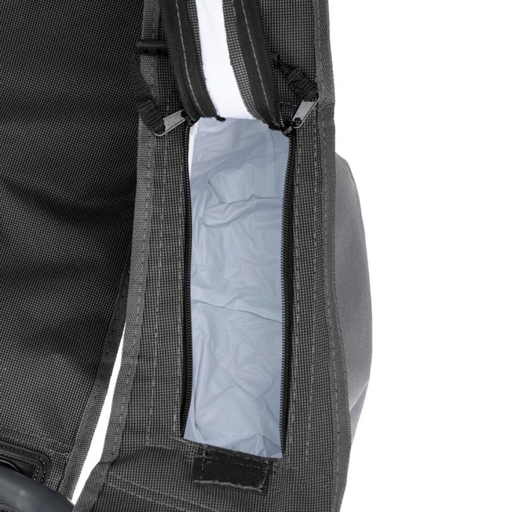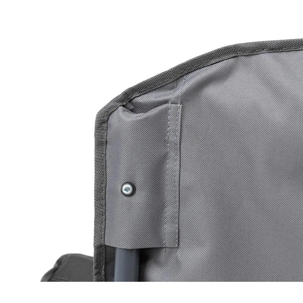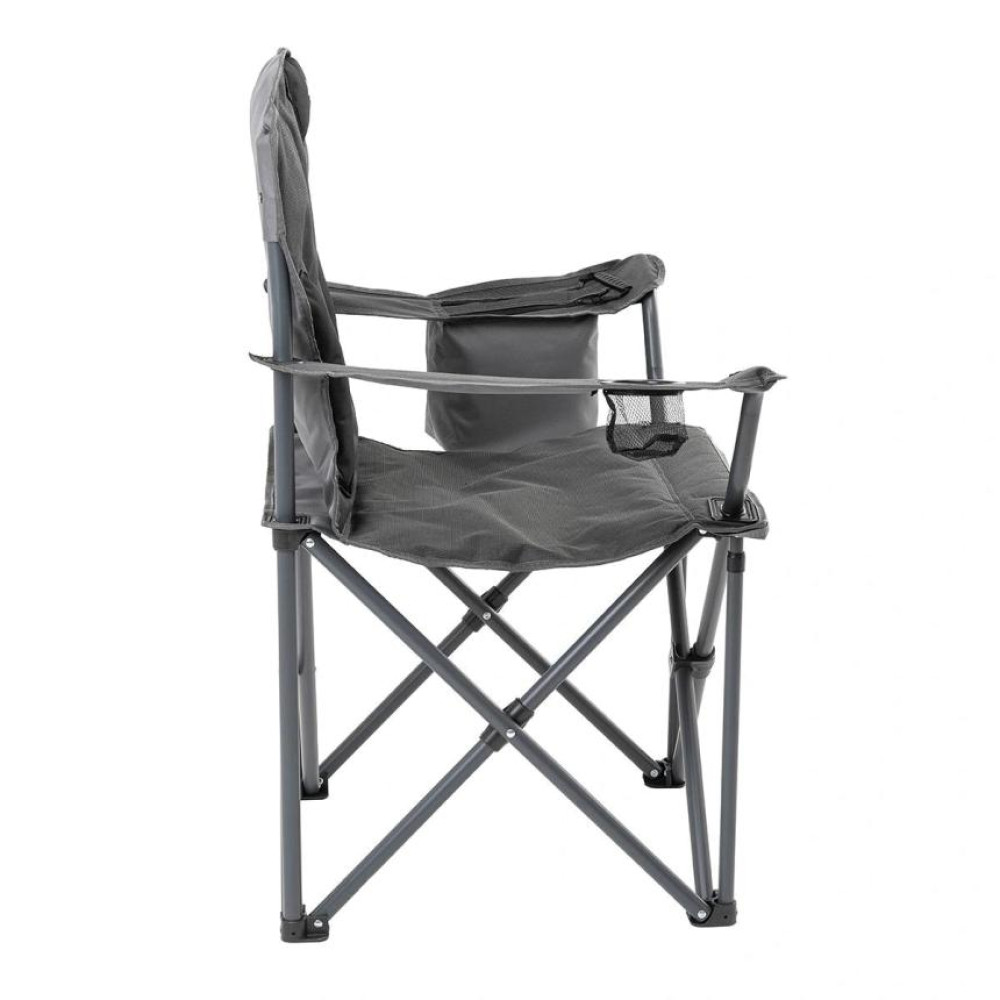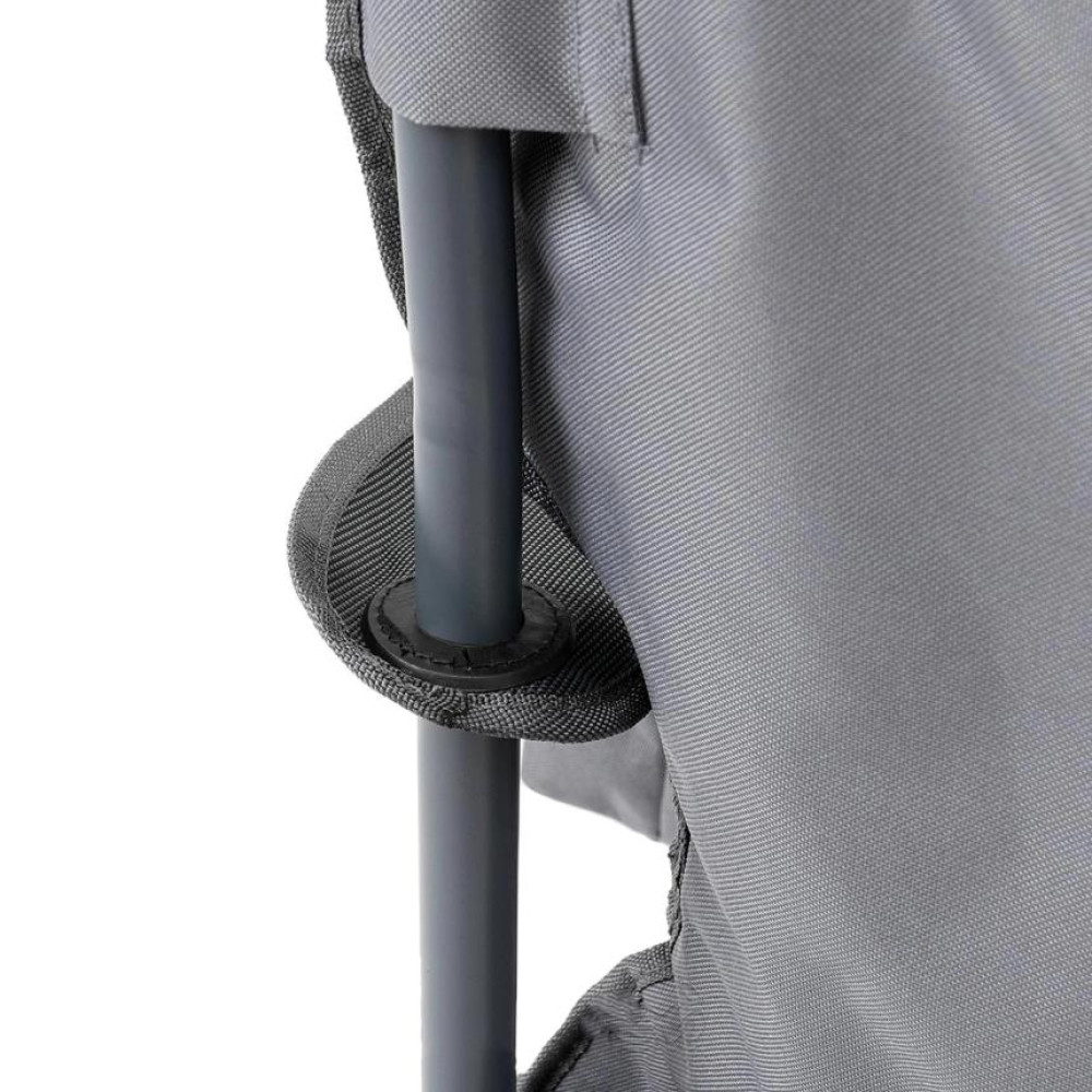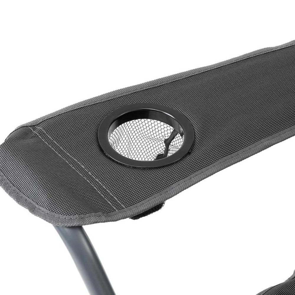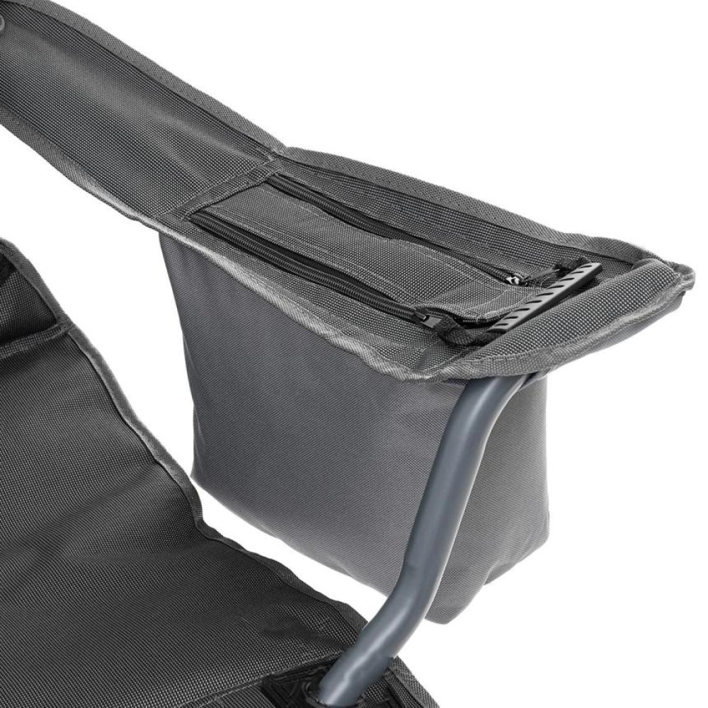 В правом подлокотнике расположен подстаканник из ткани для стакана или банки с напитком. В левом подлокотнике расположен карман на молнии, из ткани с термоизолирующей прокладкой.
