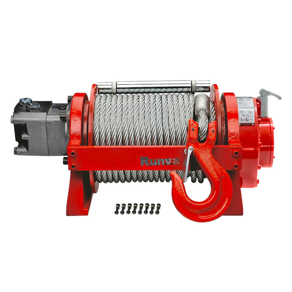 Промышленная гидравлическая лебедка Runva серии HWX с тяговым усилием 9072 кг ( 20000 lbs) предназначена для применения на грузовиках, эвакуаторах или другой специализированной технике. Лебедка подключается к гидравлической системе автомобиля и не перегружает его электрическую сеть. Гидравлические лебедки в отличии от электрических аналогов легко выдерживают продолжительную непрерывную эксплуатацию при высоких показателях нагрузки, так как при работе не происходит просадка напряжения в бортовой сети. Отсутствие электромотора и блока соленоидов позволяет лебедке полноценно работать даже полностью погруженной под воду.