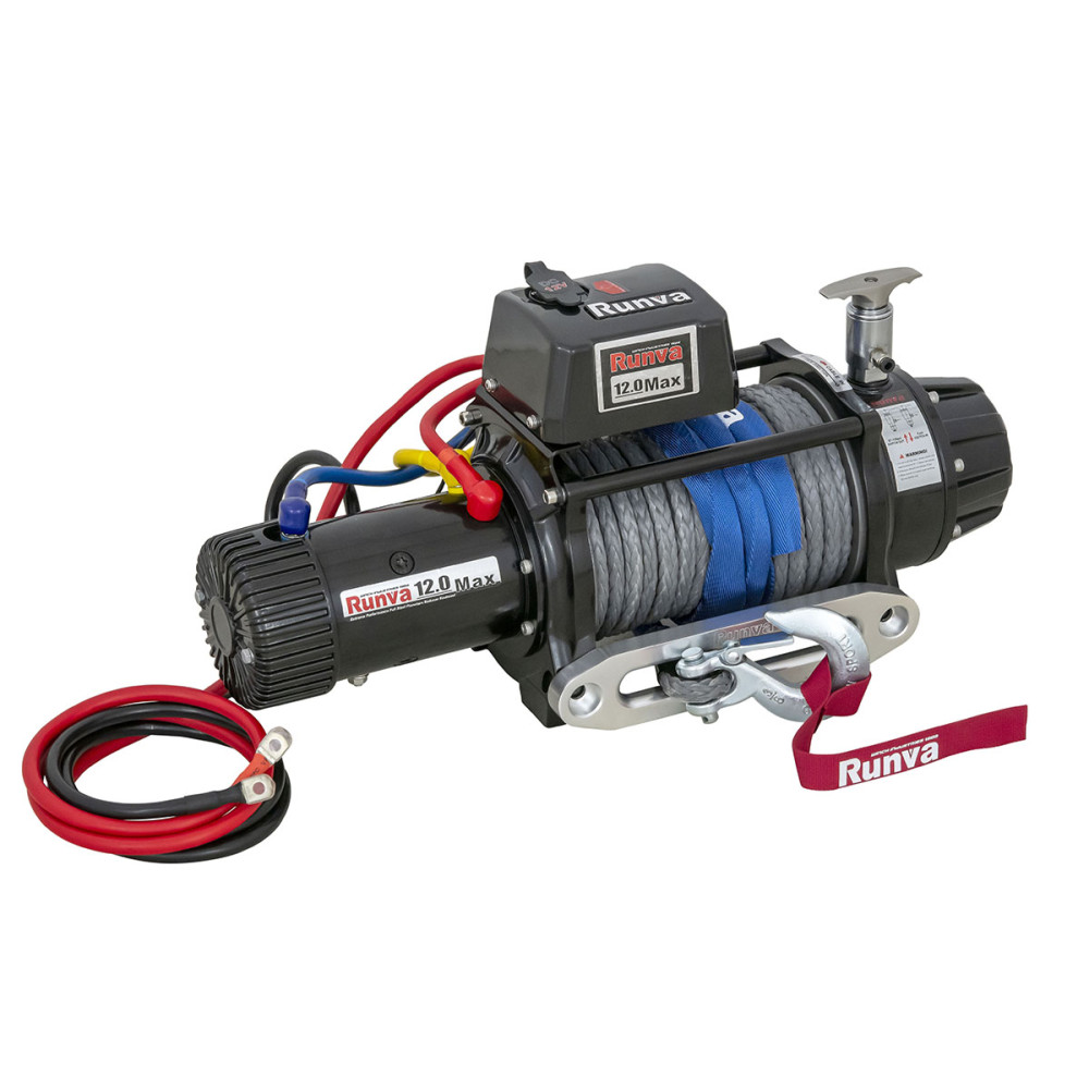 Лебёдка автомобильная электрическая 12V Runva 12000 lbs 5443 кг влагозащищённая, комбинированный роспуск, синтетический трос, уценённая