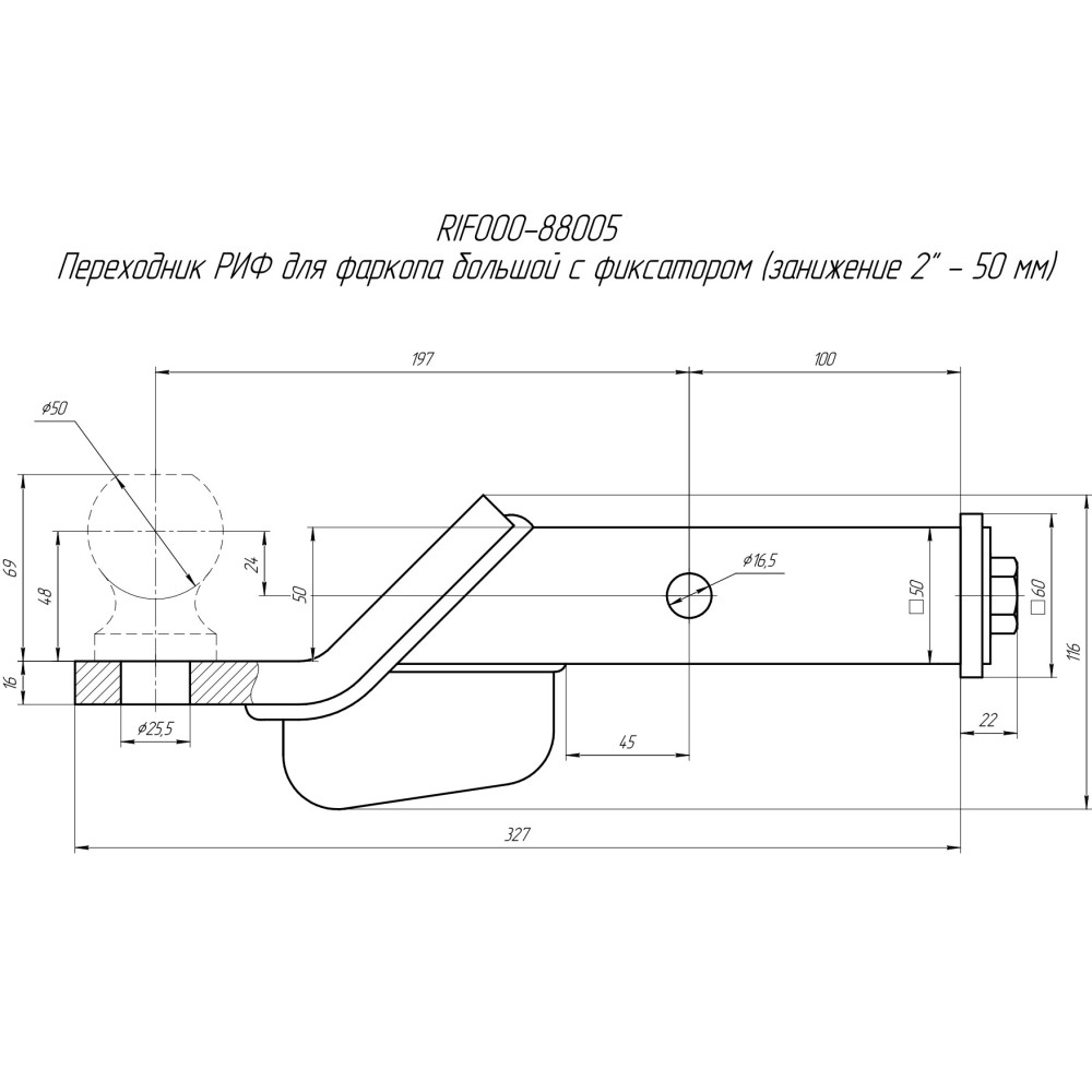 Переходник РИФ для фаркопа малый с фиксатором (занижение 2" - 50 мм)