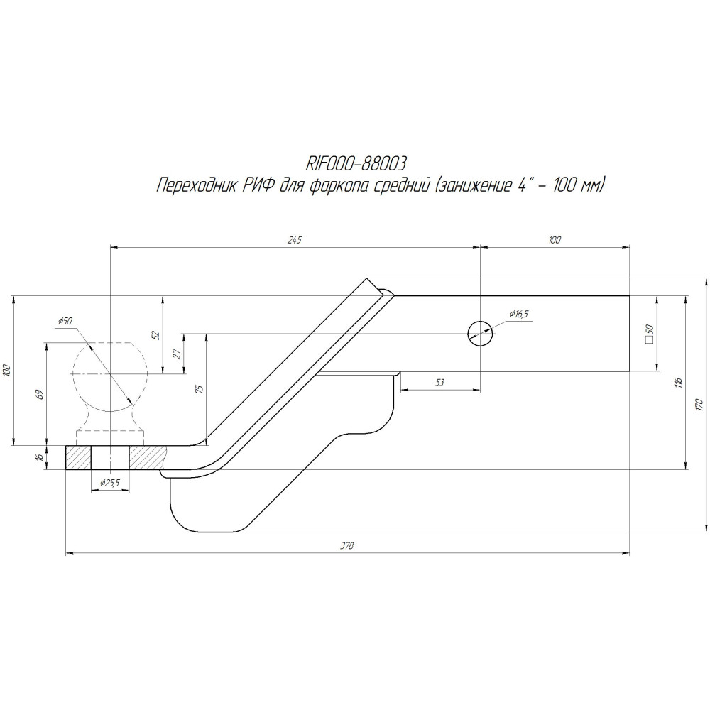 Переходник РИФ для фаркопа средний (занижение 4" - 100 мм)
