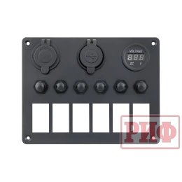 Код товара: RIF22-645-40880 Панель монтажная для 6 переключателей с индикацией, с вольтметром, с розеткой USB 4,2А 12В и предохранителями2920р.