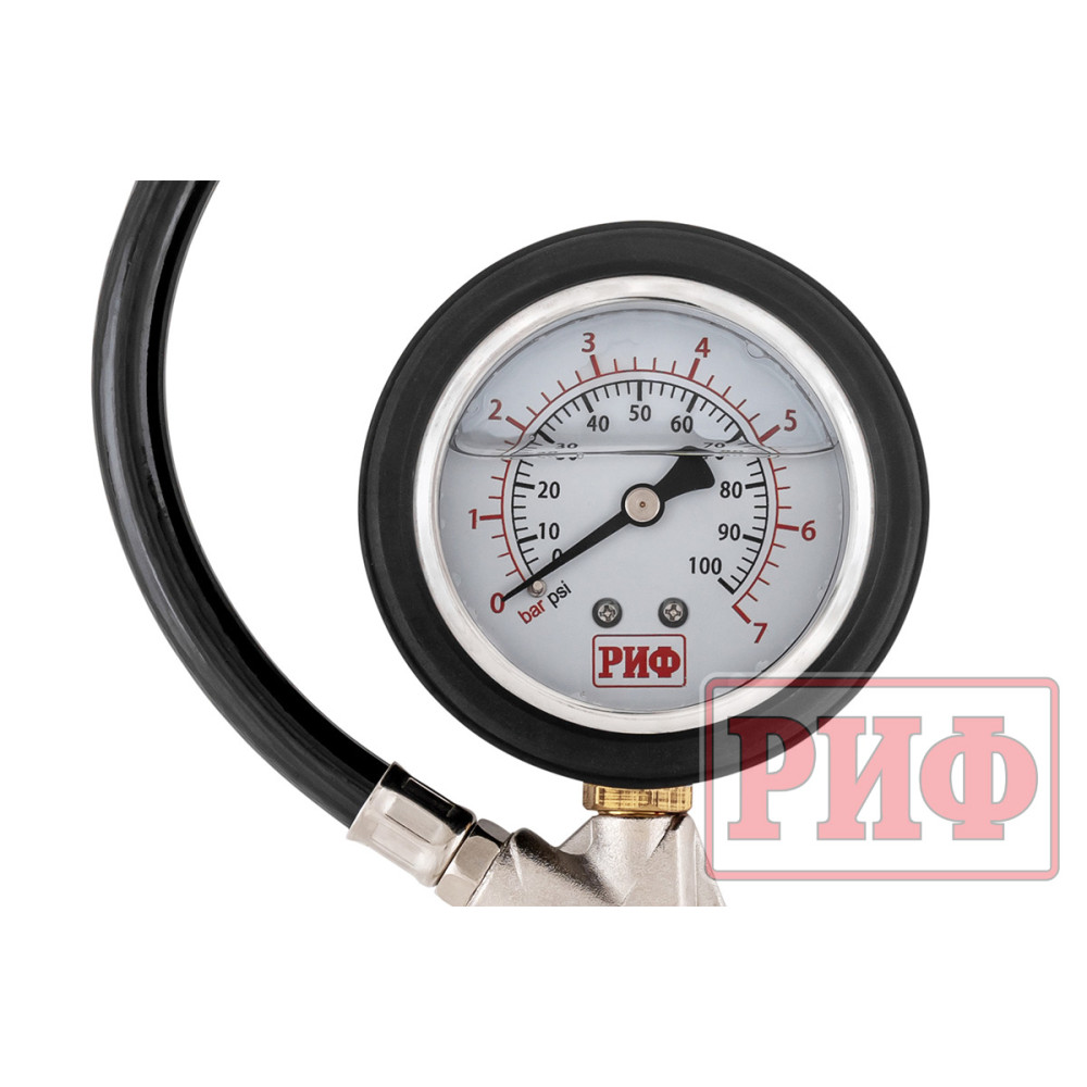 Пистолет РИФ для подкачки колес виброустойчивый (серебро) с манометром РИФ от 0 до 7 атм.