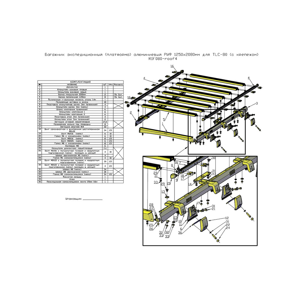 Весь крепеж, который используется в конструкции багажника, в том числе для его сборки и установки, выполнен из высококачественной нержавеющей стали, т.е. со временем не будет никаких ржавых потеков и болты «не закиснут». В случае необходимости, крепеж можно докупить как у нас, так и в любом магазине, продающем крепежные изделия. Багажник поставляется в картонной упаковке с крепежом и подходит только под конкретную модель автомобиля.