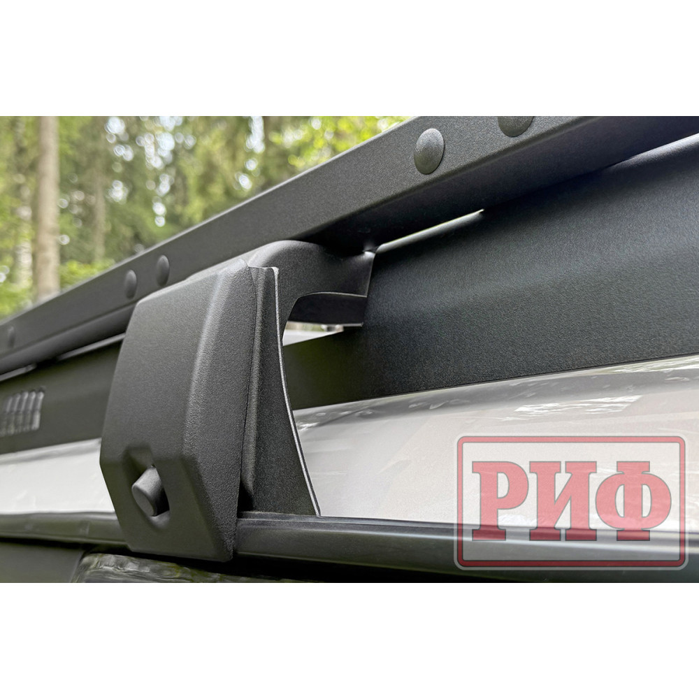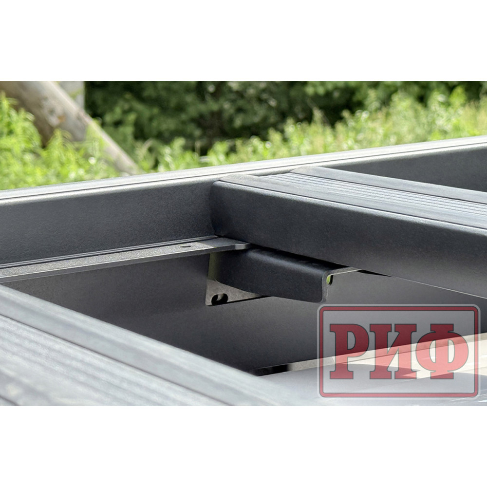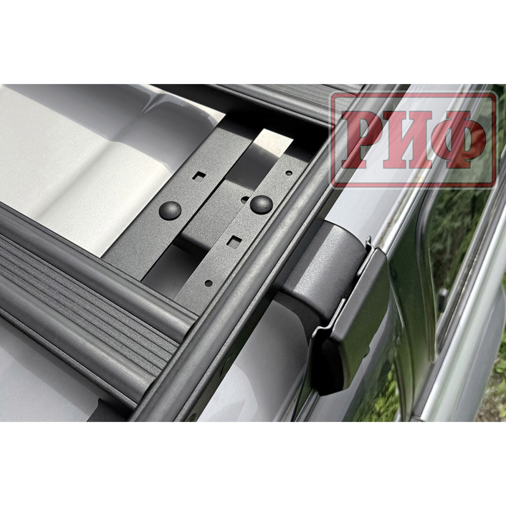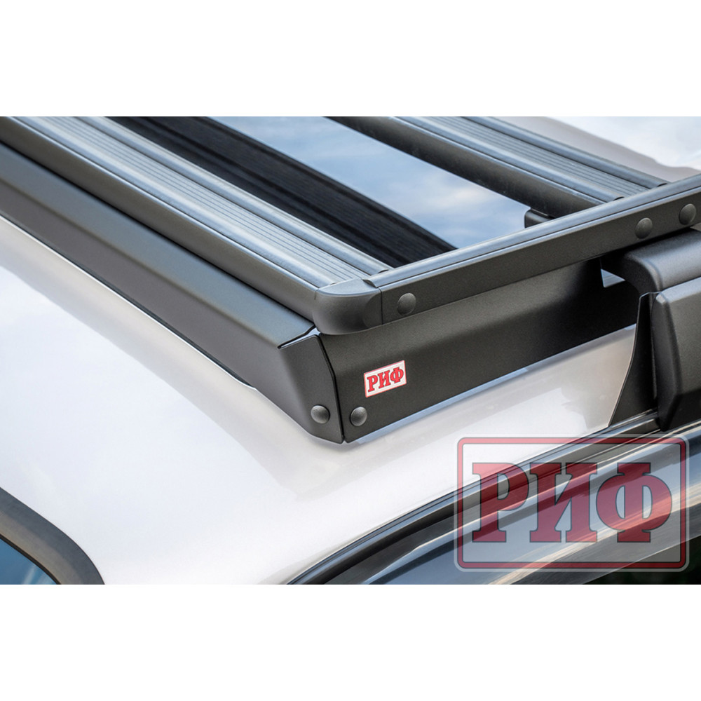 Алюминиевый багажник РИФ – это не просто платформа, на которую можно что-то положить, и притянуть подручными средствами к поперечинам, а полноценная система для крепления не только различных по форме и весу грузов, но и многочисленного дополнительного оборудования и инвентаря. В поперечинах, на всю их длину, есть пазы в которые заводятся крепежные болты кронштейнов или кольца для стяжных крепежных ремней. Таким образом точку крепления можно организовать в любом месте платформы. Толщина стенки паза, в который входит болт крепления, - 3 мм, что позволяет ему держать нагрузку на разрыв до 200 кг! Пазы закрыты специальными упругими пластиковыми защитными лентами, имеющими объемную полусферическую форму. Благодаря этому, груз, размещаемый на платформе, не контактирует с собственно алюминием, а лежит на этих лентах. Таким образом, не царапается порошковая краска багажника и сам груз. Также ленты препятствуют попаданию грязи, мусора и воды в пазы.
