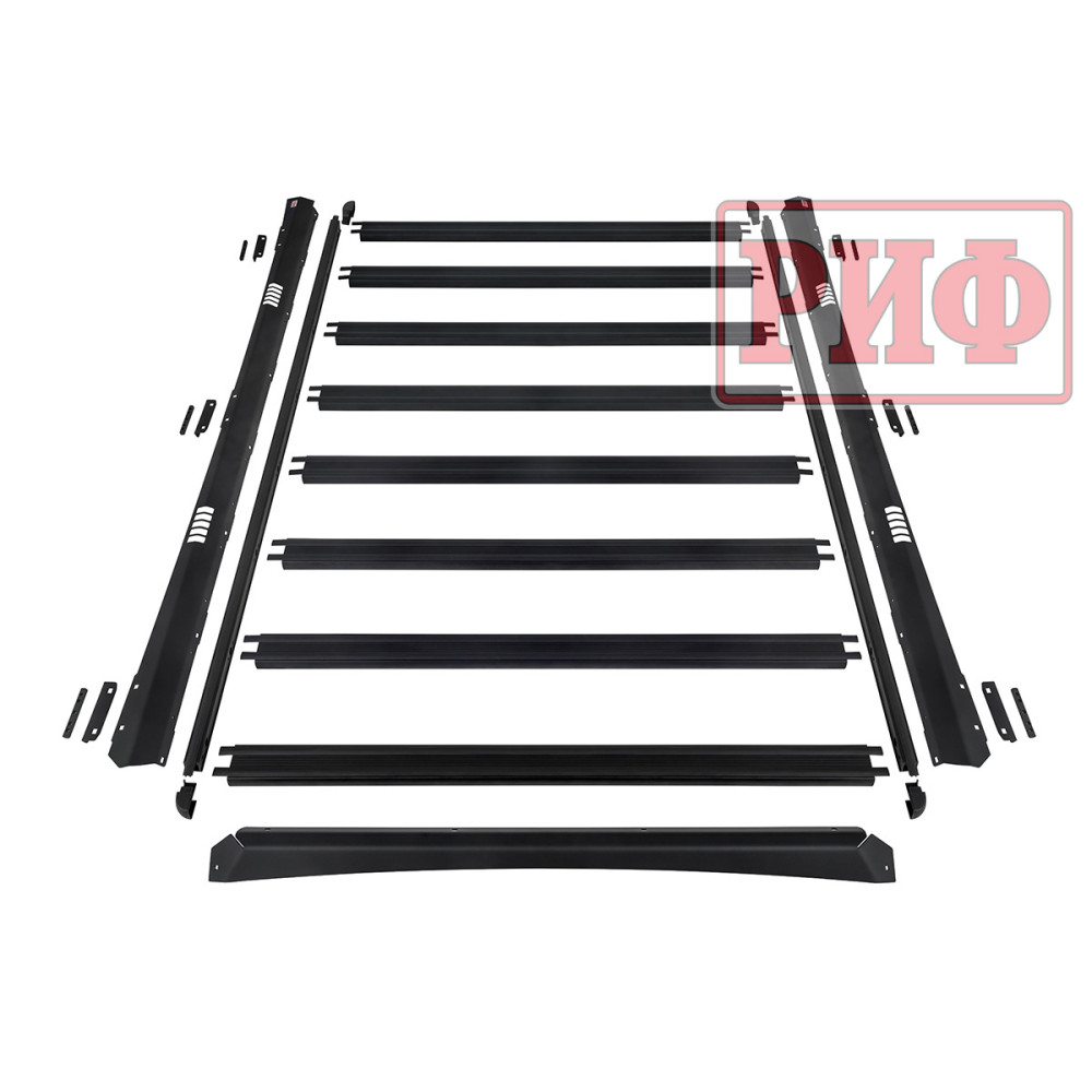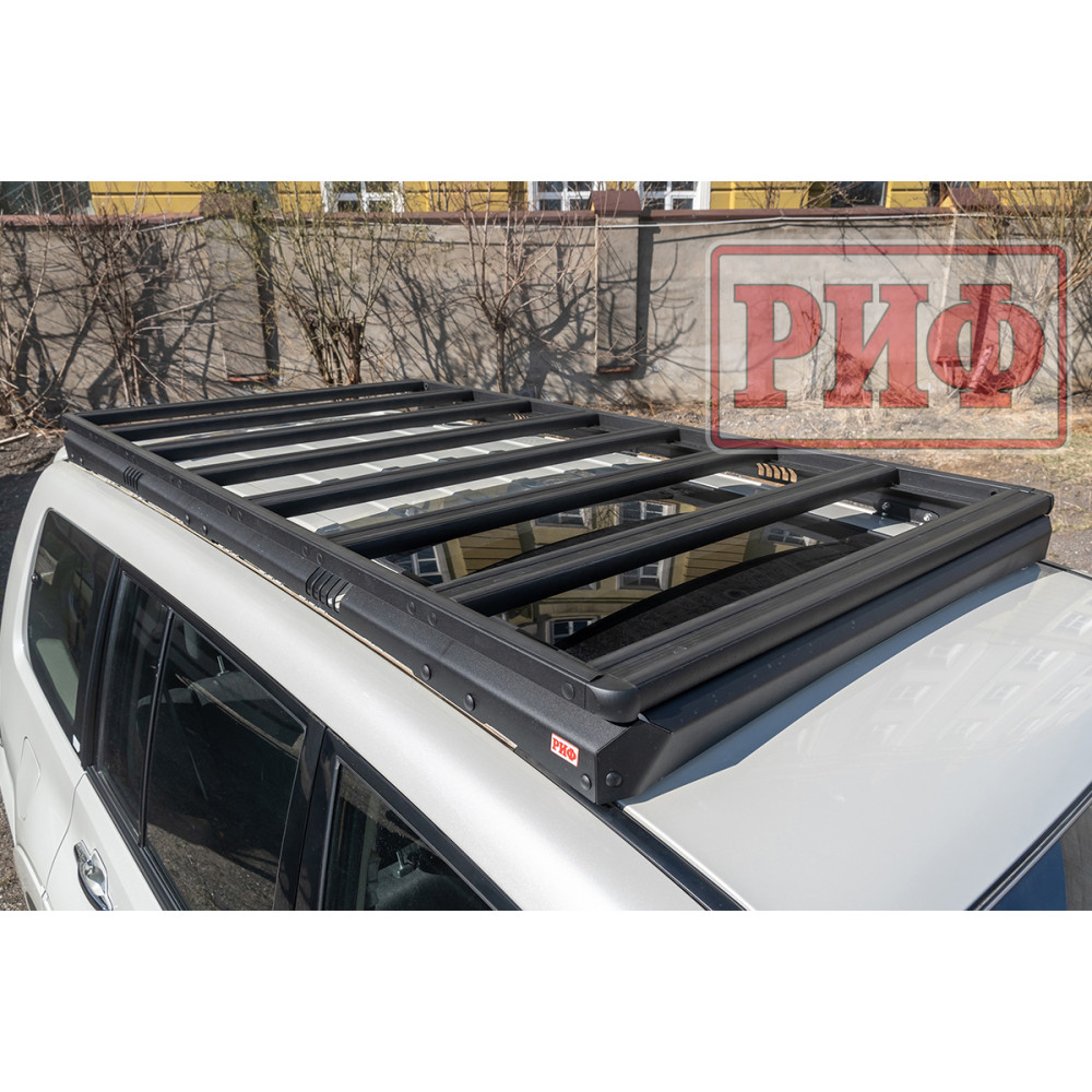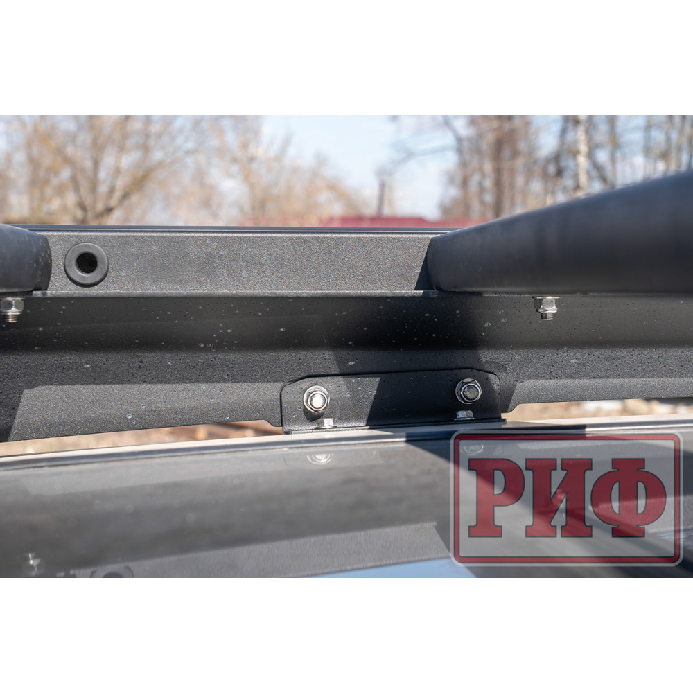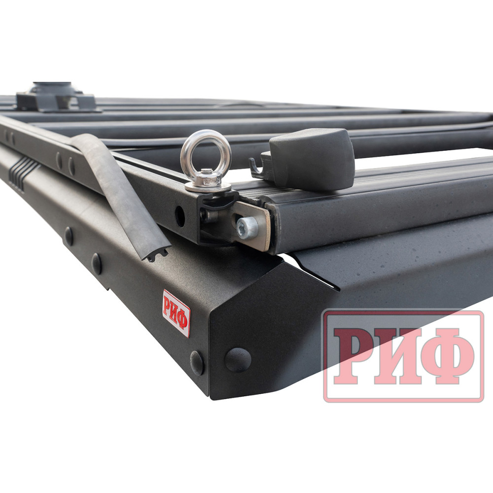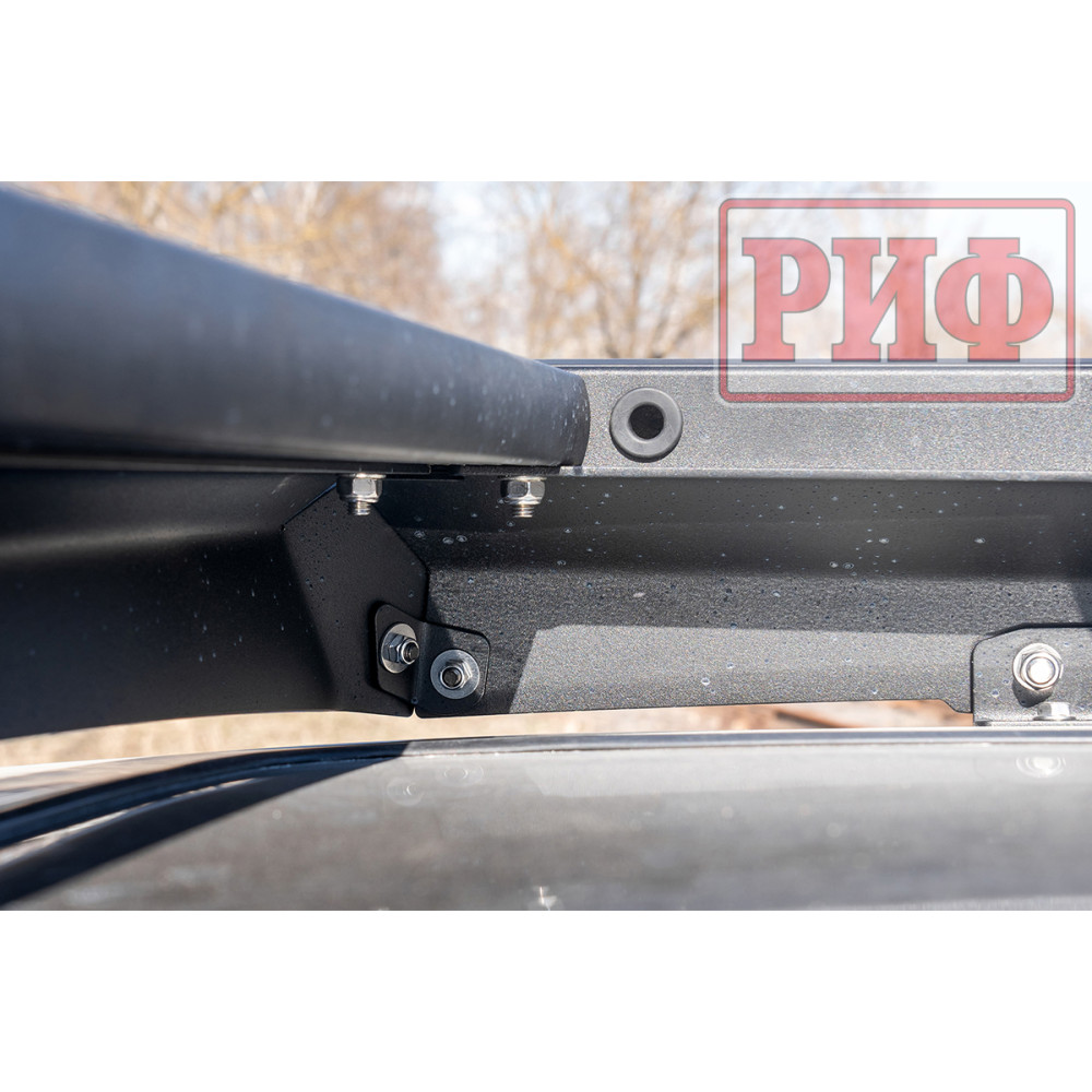 Для данного багажника мы рекомендуем комплект кронштейнов арт. RIF000-99078 (Кронштейны для крепления маркизы (крепежный размер от 61 до 69 мм) к алюминиевому багажнику (платформе) РИФ).