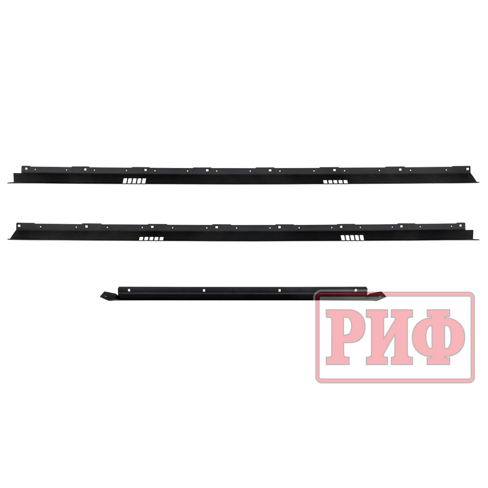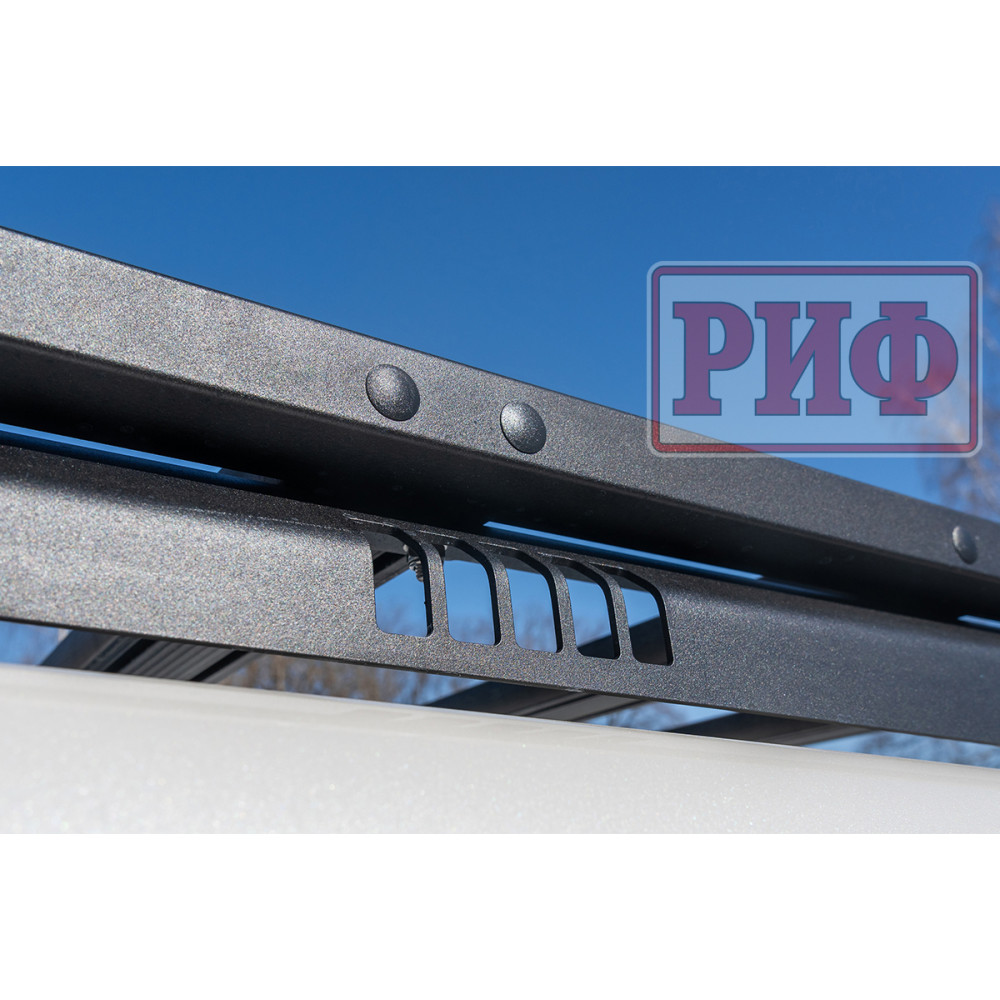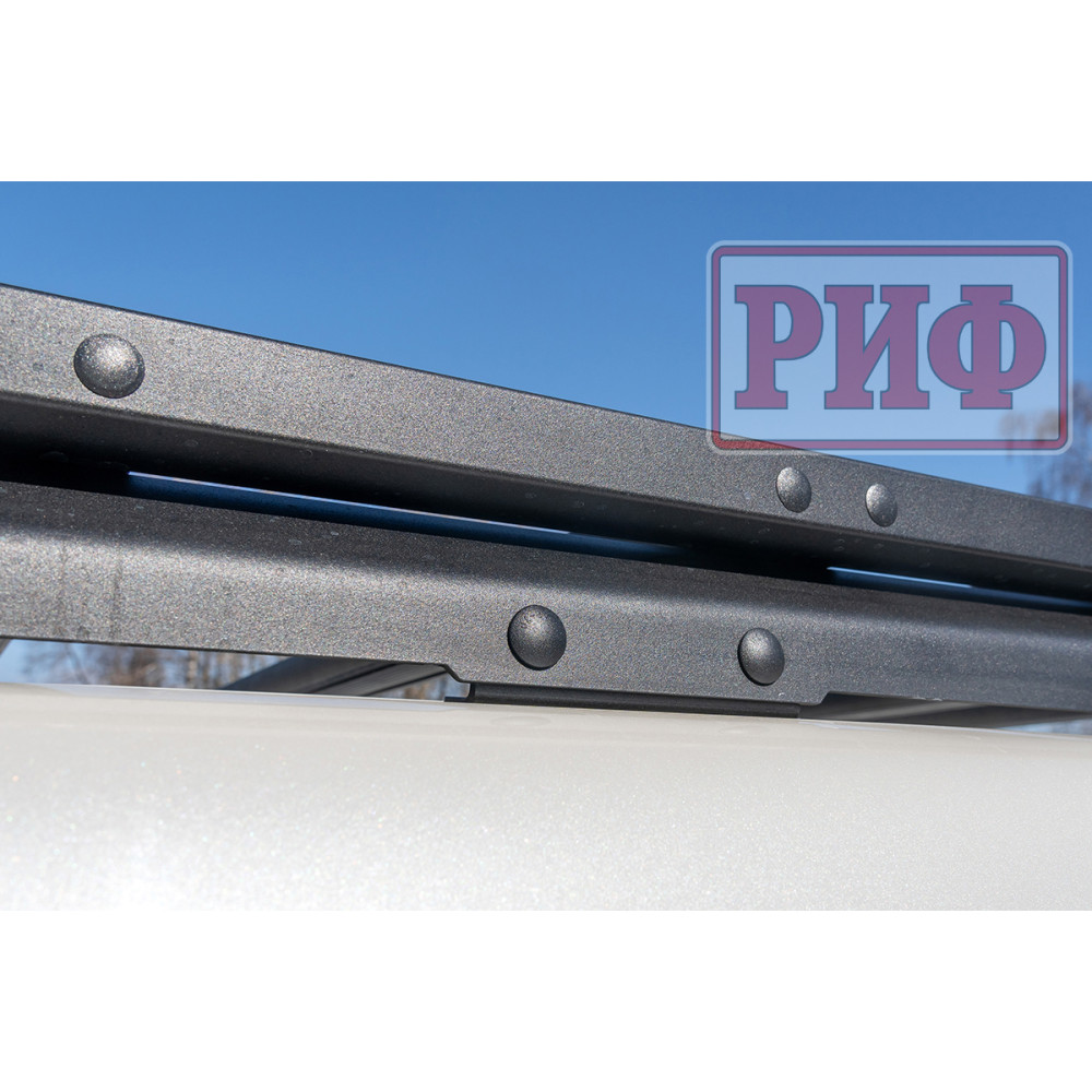 Алюминиевый багажник РИФ – это не просто платформа, на которую можно что-то положить, и притянуть подручными средствами к поперечинам, а полноценная система для крепления не только различных по форме и весу грузов, но и многочисленного дополнительного оборудования и инвентаря. В поперечинах, на всю их длину, есть пазы в которые заводятся крепежные болты кронштейнов или кольца для стяжных крепежных ремней. Таким образом точку крепления можно организовать в любом месте платформы. Толщина стенки паза, в который входит болт крепления, - 3 мм, что позволяет ему держать нагрузку на разрыв до 200 кг! Пазы закрыты специальными упругими пластиковыми защитными лентами, имеющими объемную полусферическую форму. Благодаря этому, груз, размещаемый на платформе, не контактирует с собственно алюминием, а лежит на этих лентах. Таким образом, не царапается порошковая краска багажника и сам груз. Также ленты препятствуют попаданию грязи, мусора и воды в пазы.