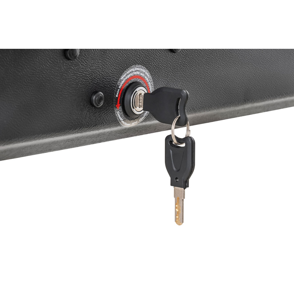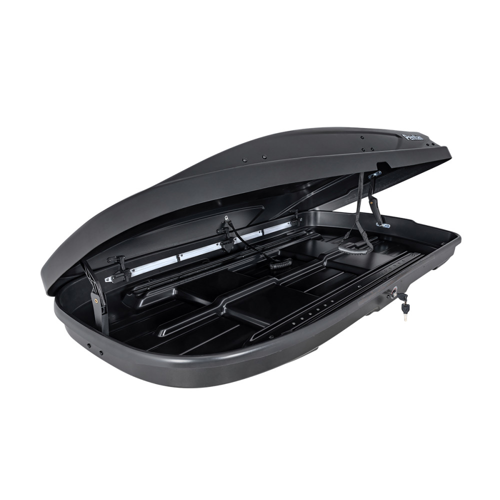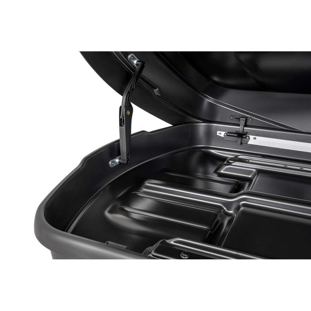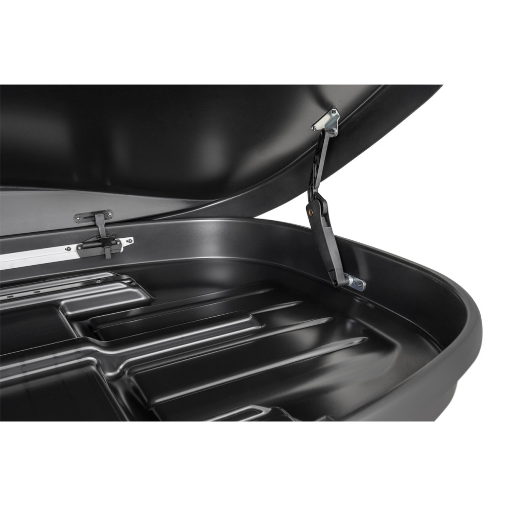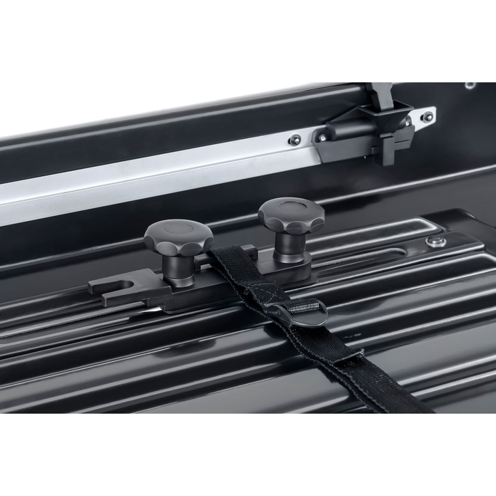 Простая и надёжная система фиксации обеспечивает крепление бокса к поперечинам автомобиля. Просцесс снятия и установки быстр и удобен, и не требует специальных навыков или инструментов. Для обеспечения сохранности багажа во время парковки или ночной стоянки бокс снабжен запираемыми замками.