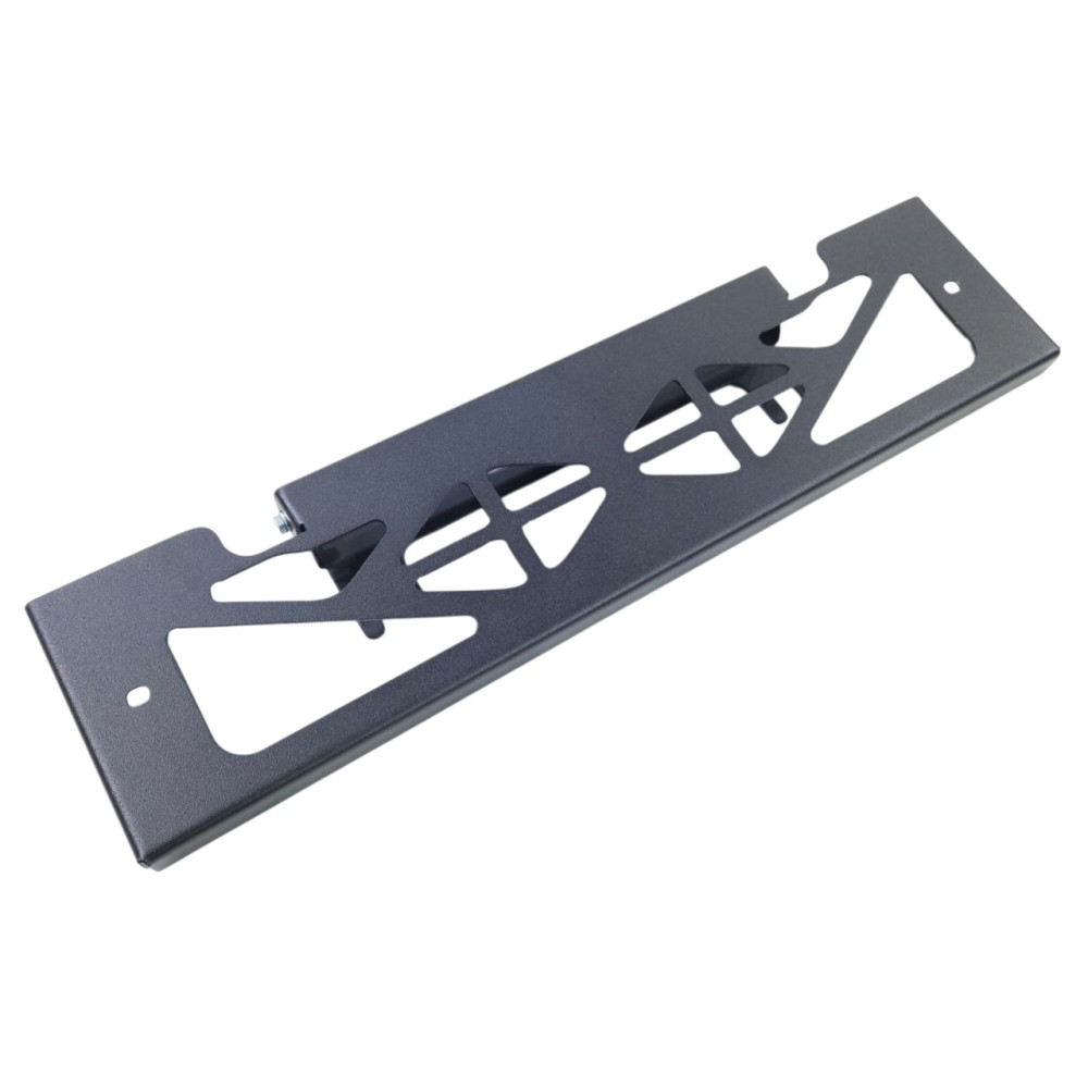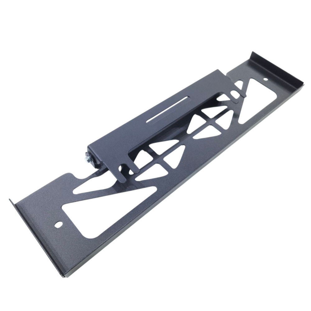 Кронштейн для установки номерного знака устанавливается под алюминиевый/ чугунный клюз (монтажный размер - 254 мм) на площадку крепления лебёдки либо дополнительными крепежными элементами непосредственно к бамперу.