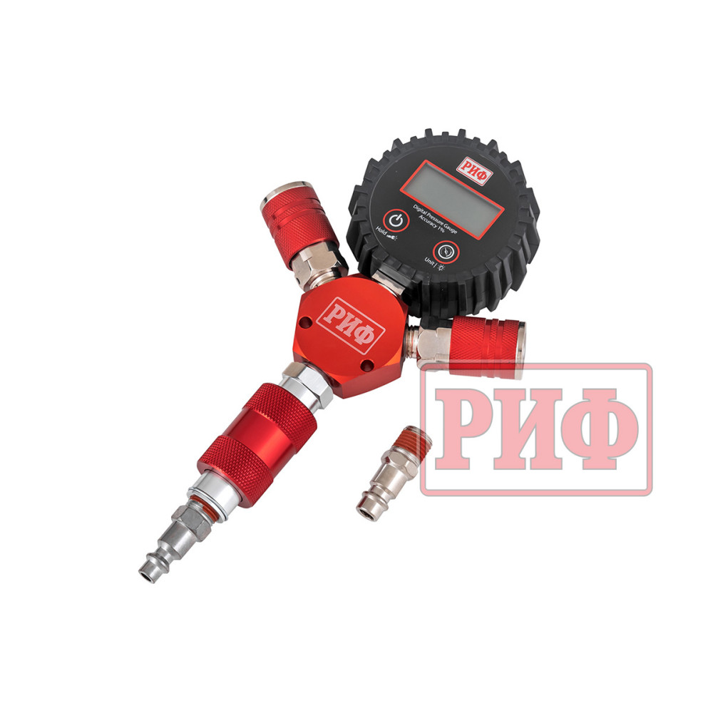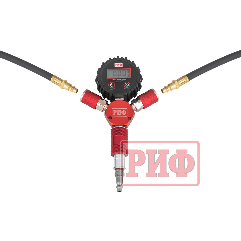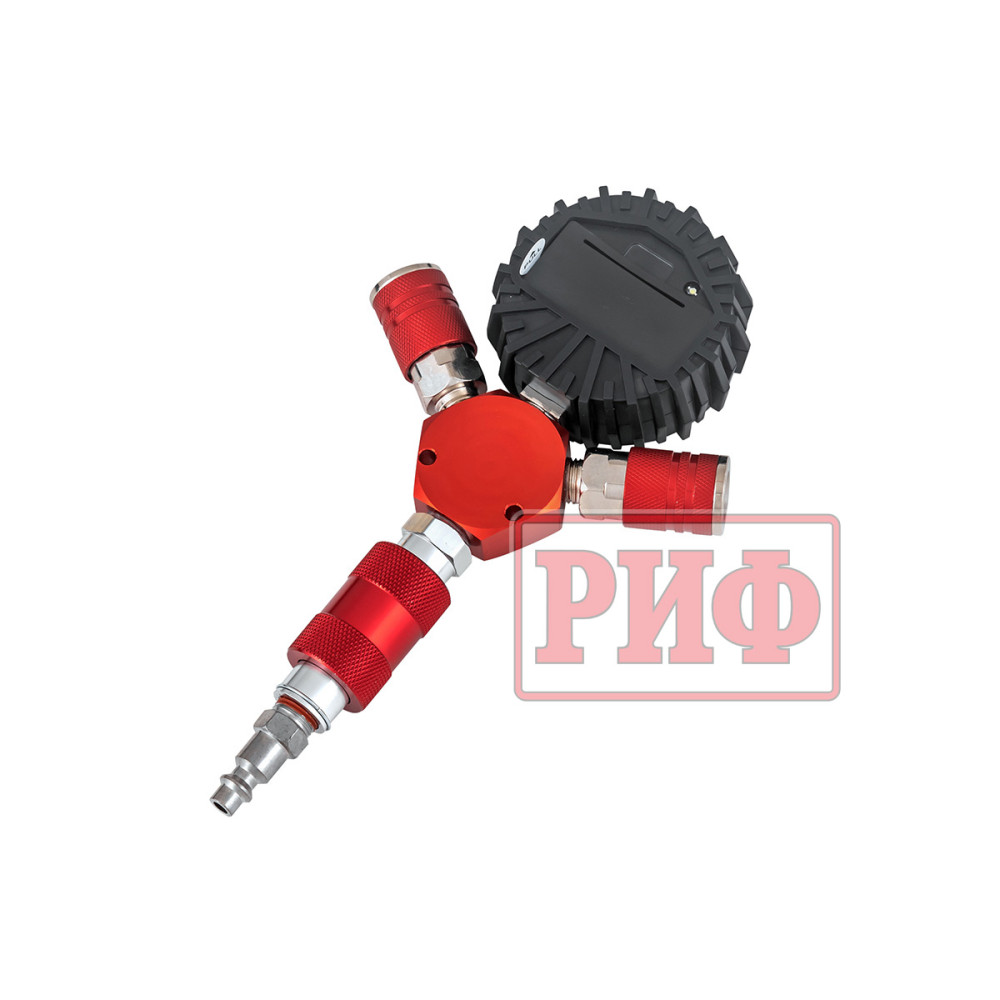 При подключении шлангов на манометре показывается общее давление во всех 4-х колесах. Используя встроенный дефлятор, можно стравить давление до требуемого значения.