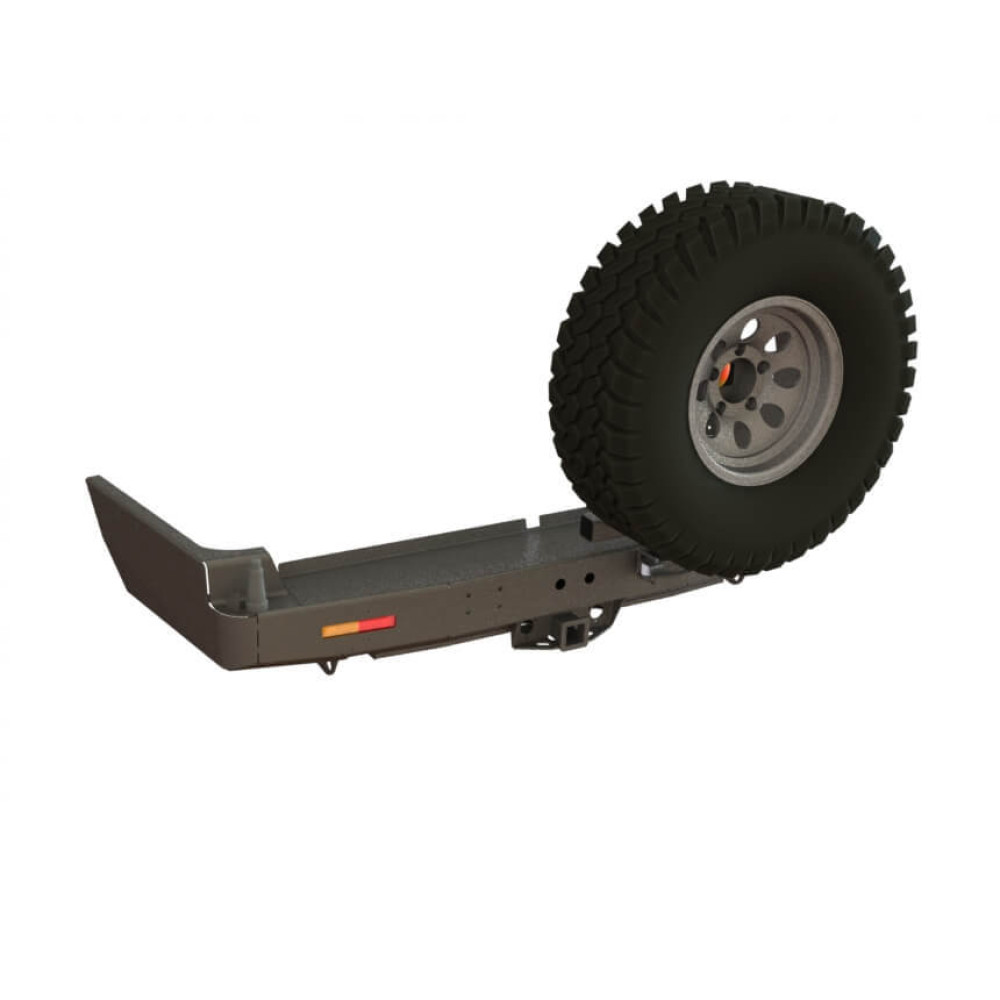 Бампер силовой задний STC Toyota Land Cruiser 105 с квадратом под фаркоп, кронштейном крепления запасного колеса справа и дублирующими фонарями
