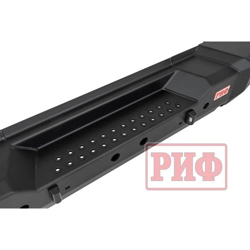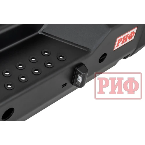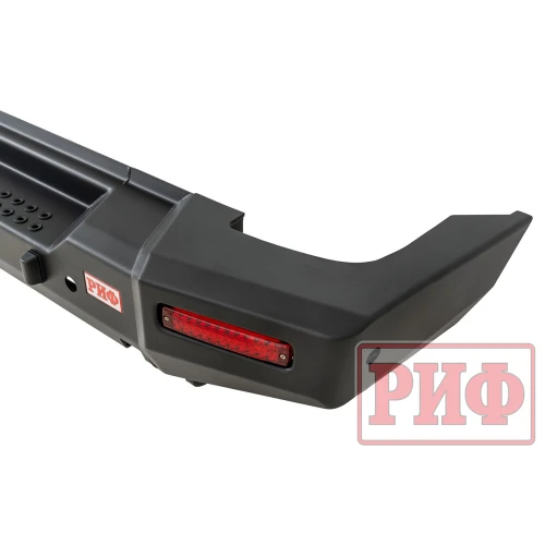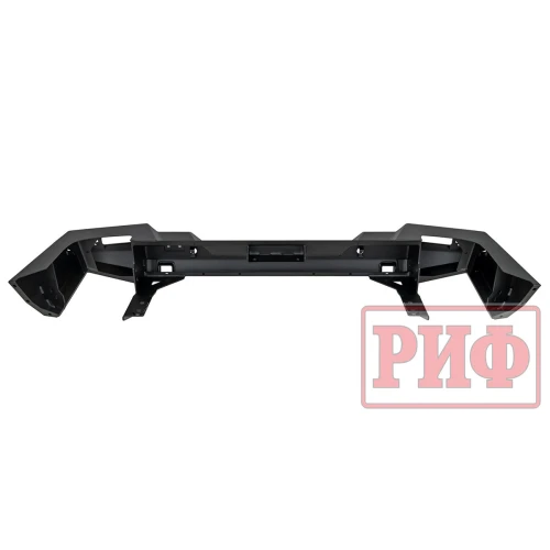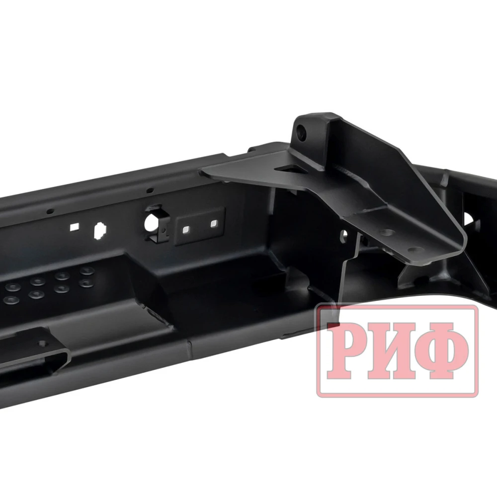 Задний силовой бампер РИФ надежно защитит кузов автомобиля на бездорожье или в городе в случае непредвиденных инцидентов. Бампер оборудован упорами под хай джек и буксирными проушинами для работы с рывковой или буксировочной стропой.