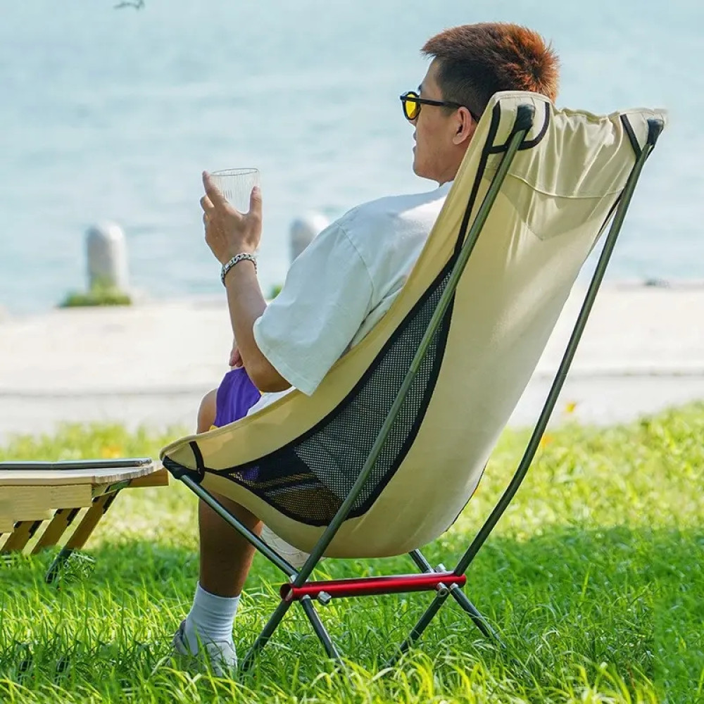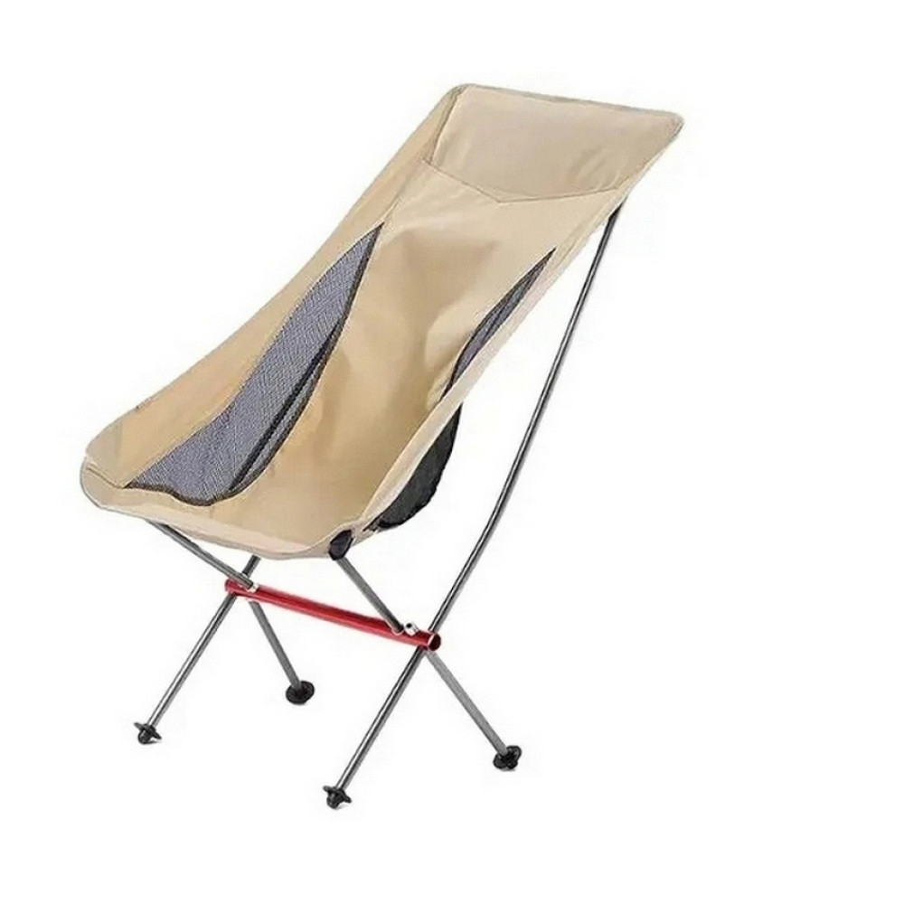 Кресло туристическое YL06 складное (компактное и легкое), бежевое, высокая спинка, до 110 кг