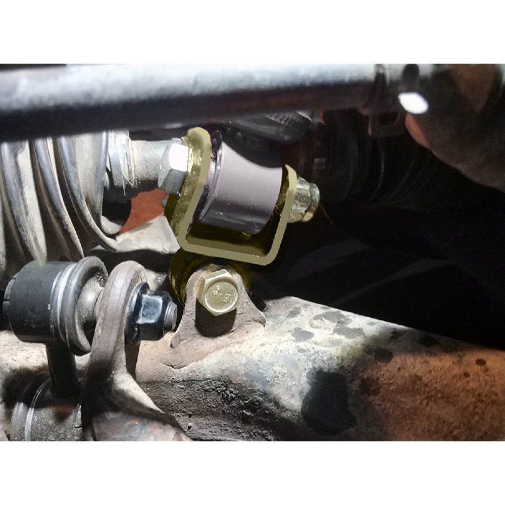 Удлиняют штатные амортизаторы с шириной втулки 32-34 мм, и диаметром отверстия 12 мм. Перенос точки крепления на 40 мм.