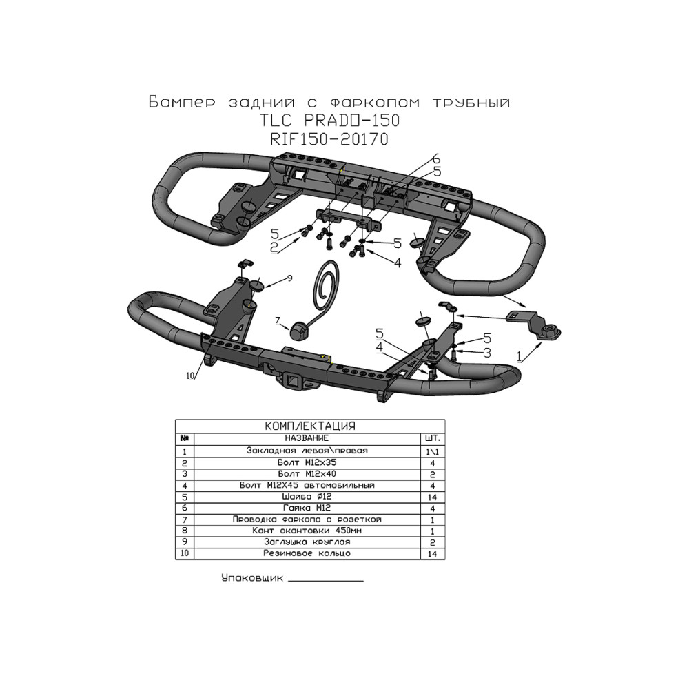 Бампер РИФ силовой задний Toyota Land Cruiser Prado 150 c квадратом под фаркоп (белый)