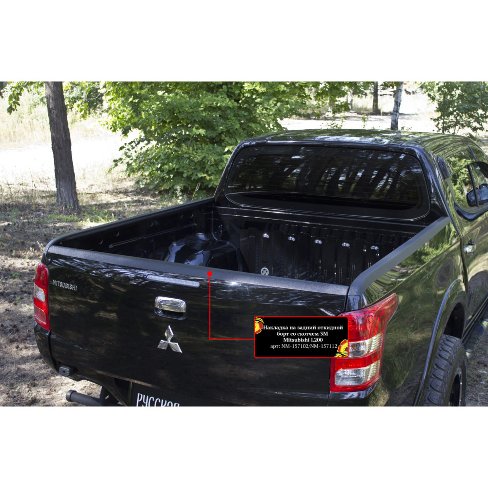 Комплект накладок на передний борт кузова, боковые борта и задний откидной борт со скотчем 3М Mitsubishi L200 2015-2018 (V дорестайлинг).