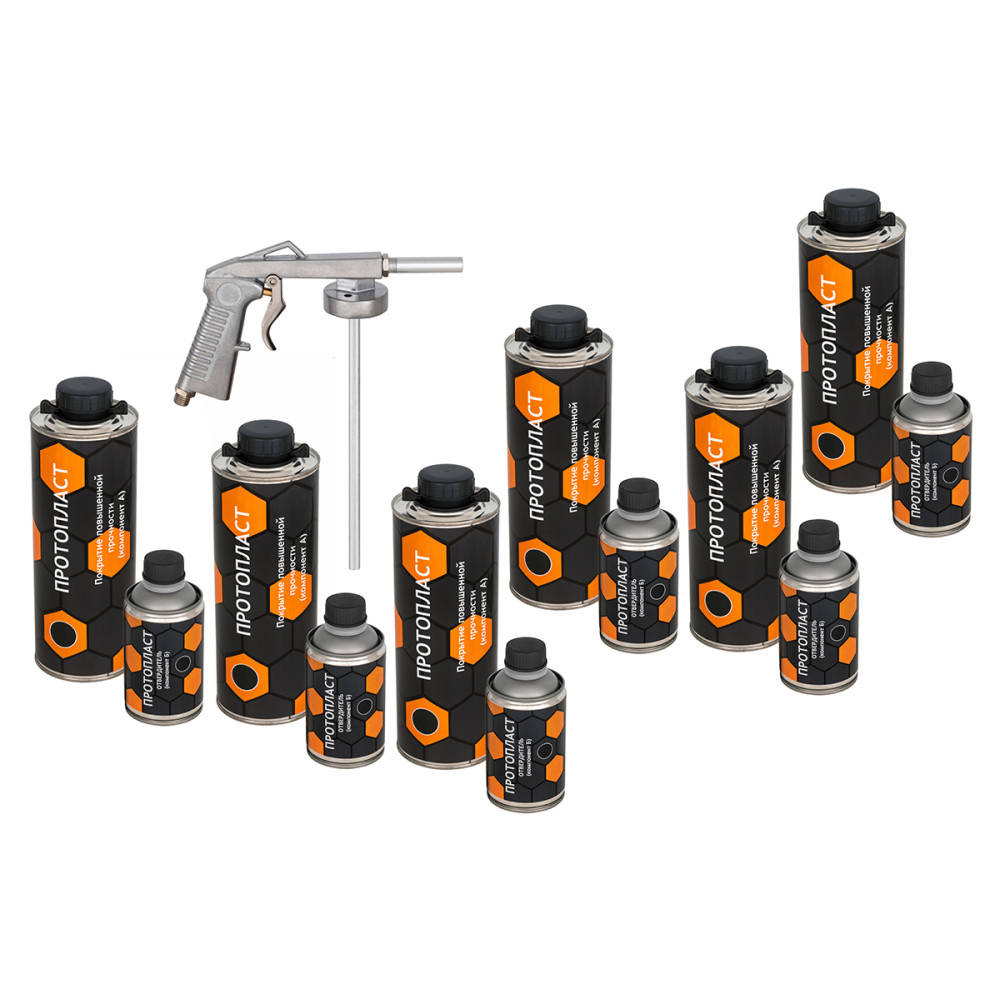 Покрытие защитное повышенной прочноcти черное ПРОТОПЛАСТ, с отвердителем 6 л и пистолетом, (аналог RAPTOR U-POL)