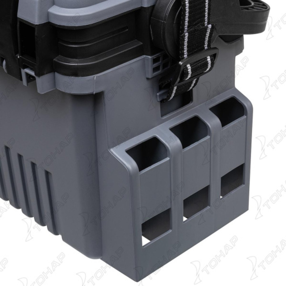 • Регулируемый по длине плечевой ремень с прорезиненной вставкой, которая предотвращает соскальзывание ящика с плеча во время движения.