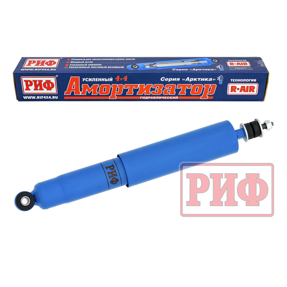 Главной особенностью амортизаторов «РИФ» «Арктической» серии является использование специального масла с особо низким показателем рабочей температуры: до -55 °С. При экстремально низких температурах масло не замерзает, а остаётся текучим, что позволяет амортизатору выполнять свои функции даже в столь сложных условиях, обеспечивая комфортную и безопасную езду. При этом данное масло позволяет использовать амортизаторы и в жаркое время года без изменения рабочих качеств амортизатора. Более того, в амортизаторах «Арктика» применена уникальная технология «R-AIR», позволяющая повысить устойчивость гидравлического амортизатора к высоким нагрузкам. Внутри амортизатора находится герметичная заполненная воздухом камера из эластичной резины, создающая избыточное давление внутри амортизатора. Благодаря технологии «R-AIR» масло не вспенивается и дольше не закипает при длительных непрерывных нагрузках. Использование «R-AIR» даёт возможность отказаться от применения газа внутри амортизатора для обеспечения стабильности характеристик при больших нагрузках, что положительно сказывается на работе амортизатора в зимнее время. Благодаря увеличенному масляному резервуару с большим количеством масла, усиленным штоку и поршню, а также технологии «R-AIR», амортизаторы «РИФ» обладают длительным рабочим ресурсом и обеспечивают великолепную стабильность рабочих характеристик при продолжительной езде.