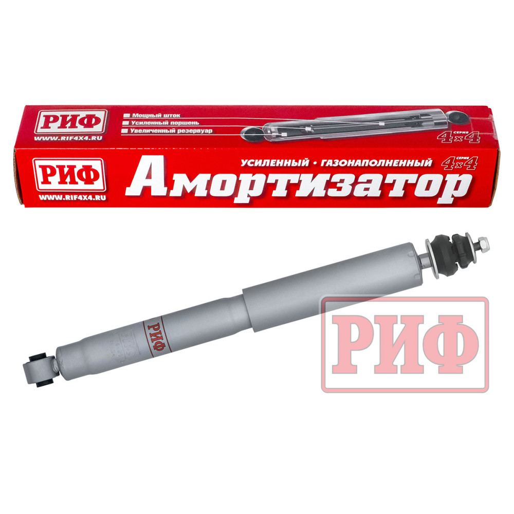 Газ, находящийся под давлением в компенсационной камере наружной трубы, позволяет повысить устойчивость амортизатора к высоким нагрузкам. Масло под давлением газа менее подвержено эффекту кавитации, а значит, и меньше вспенивается в отличие от обычного гидравлического амортизатора. Также, благодаря увеличенному масляному резервуару с большим количеством масла, усиленному штоку и поршню, амортизаторы "РИФ" обладают длительным рабочим ресурсом и обеспечивают великолепную стабильность рабочих характеристик при длительной езде по дорогам общего пользования, отличную курсовую устойчивость, хорошую артикуляцию подвески и приятную плавность хода на бездорожье.