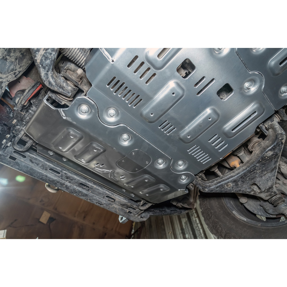 Монтаж защиты прост и не требует сверления дополнительных отверстий в раме или кузове автомобиля.